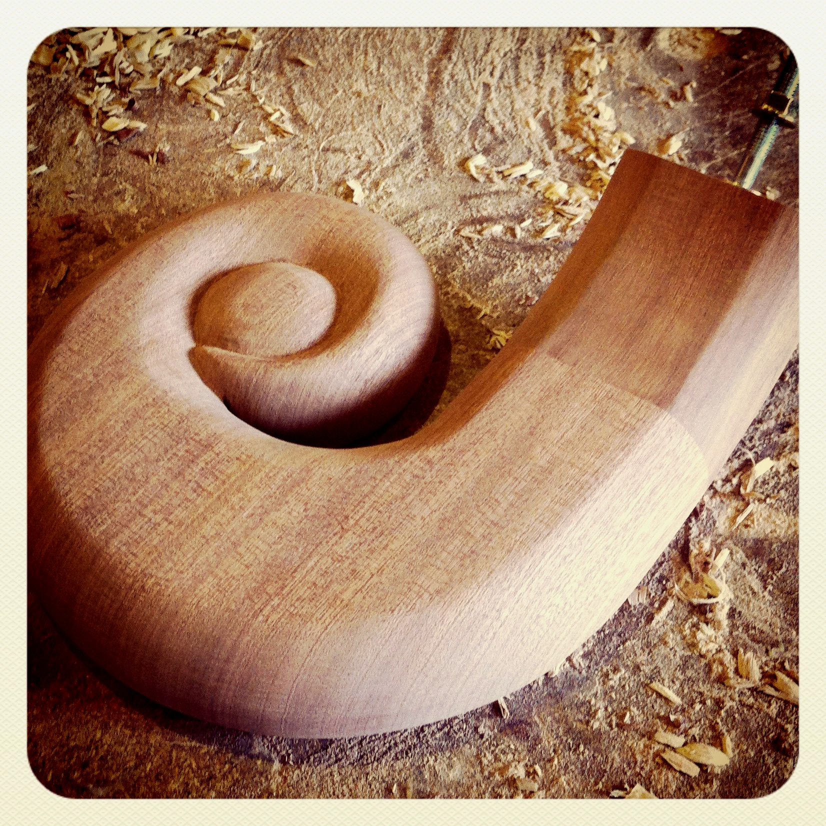 A Sapele wreath with Tulipwood spindles, shown here as a work in progress restoration job.