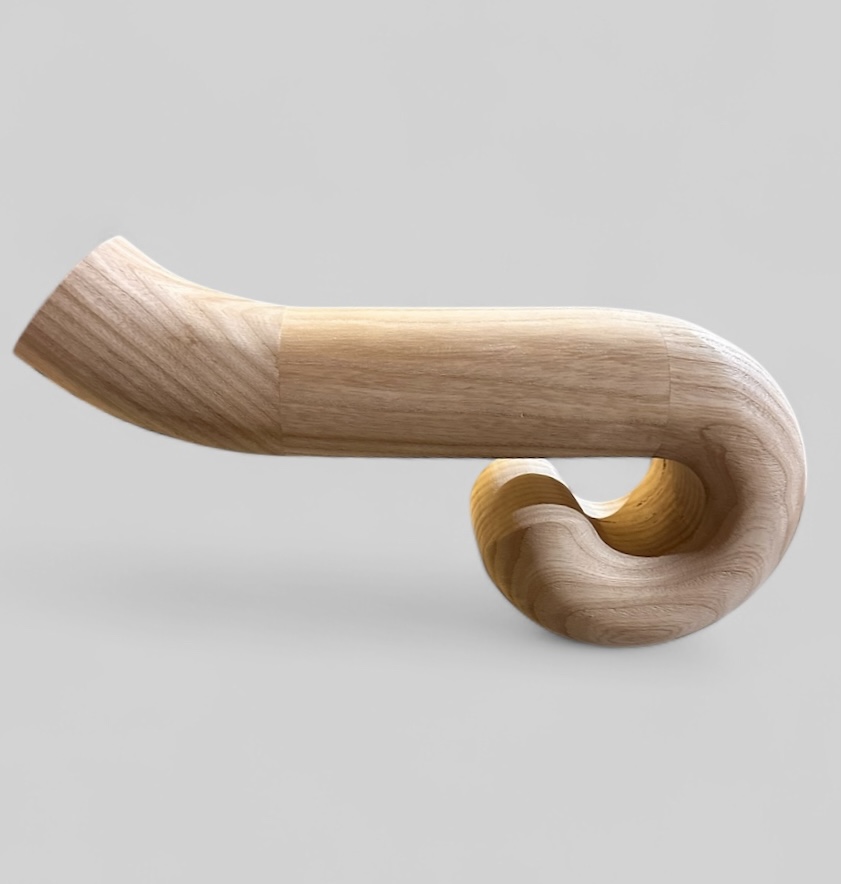 Shown in tulipwood, both left and right versions, this small volute can be used in without a full bullnose step. The pin top newel can be fastened directly to the outside of the stair string.